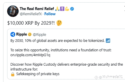$XRP Ripple’s bold outlook on the future of tokenized assets has ignited one of the most ambitious price predictions yet — a staggering $10,000 per XRP by 2029.
