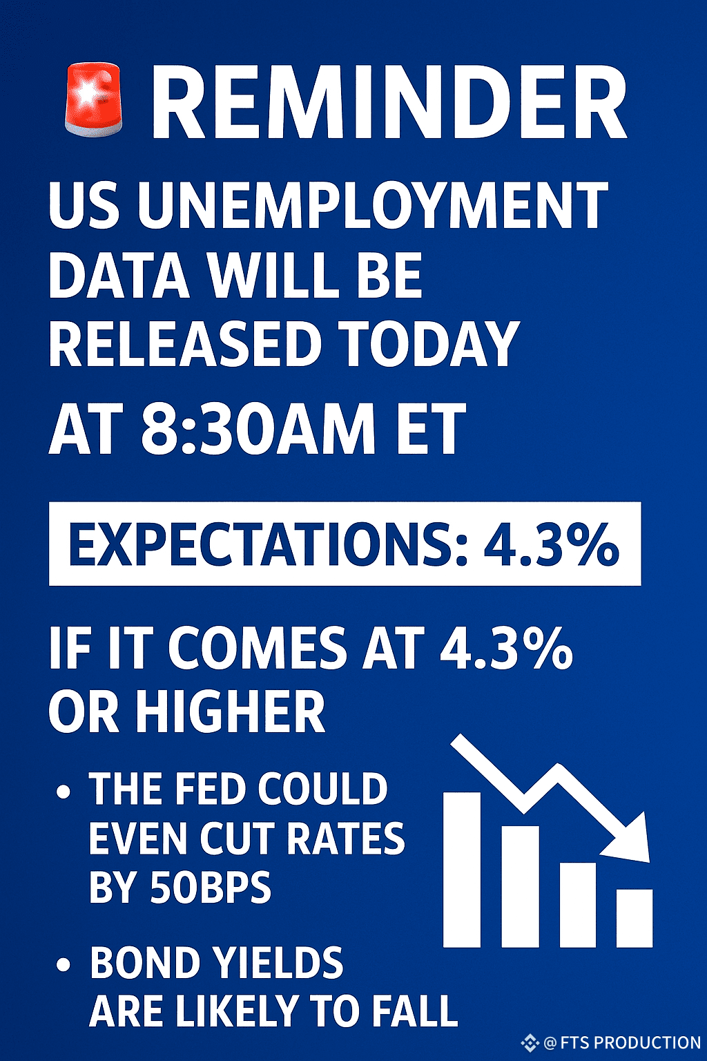 Todayโs unemployment data is crucial. If it comes in at 4.3% or above, it increases the chances of a large Fed rate cut (50bps), which could drive risk assets like stocks and crypto higher. If it comes in lower, the Fed may stay cautious, and the dollar could gain strength.