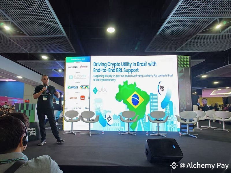 #AlchemyPay’s Ecosystem Lead, Arda Senoz, delivered an inspiring speech on “Bridging the Fiat & Crypto Global Economies” at Blockchain.Rio in Rio de Janeiro! Join us in shaping the future of crypto payment.