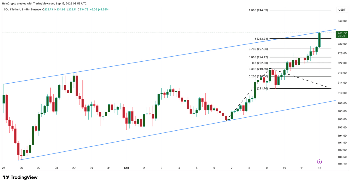 Solana is trading around $239 at the time of publication on September 12, up more than 4% in the past 24 hours. Weekly gains stand at about 15%, while the past month shows an increase of 18%. Over the past three months, the price of Solana has risen over 55%.