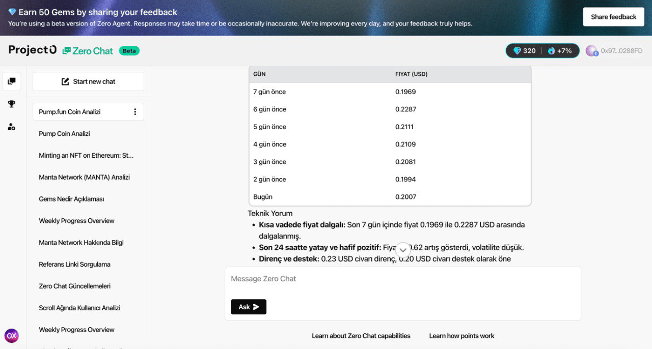 Analyzing newly listed coins in the cryptocurrency market can be time-consuming. However, thanks to Zero Chat, you can analyze WLFI, a token listed on Binance, in just a few minutes. Developed by Project Zero, Zero Chat stands out as an assistant in the Web3 world, offering comprehensive insights into areas like DeFi, NFTs, RWA, and governance. It provides real-time data feeds, learns user interactions, and offers strategic guidance.