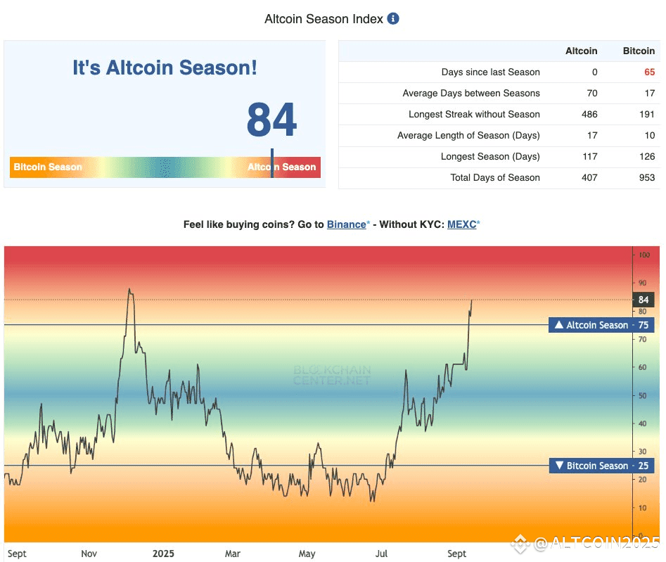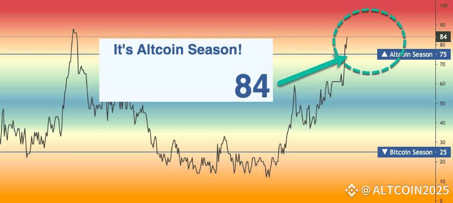 – 75–100: Full Altseason (capital flooding into alts)