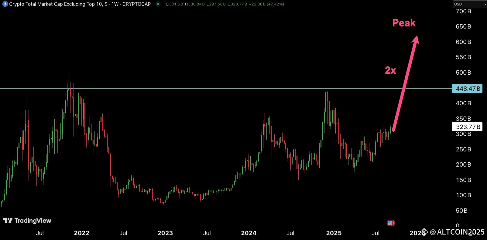 The “Others” index (total crypto market cap excluding top 10) has already bounced 50%+ off the bottom