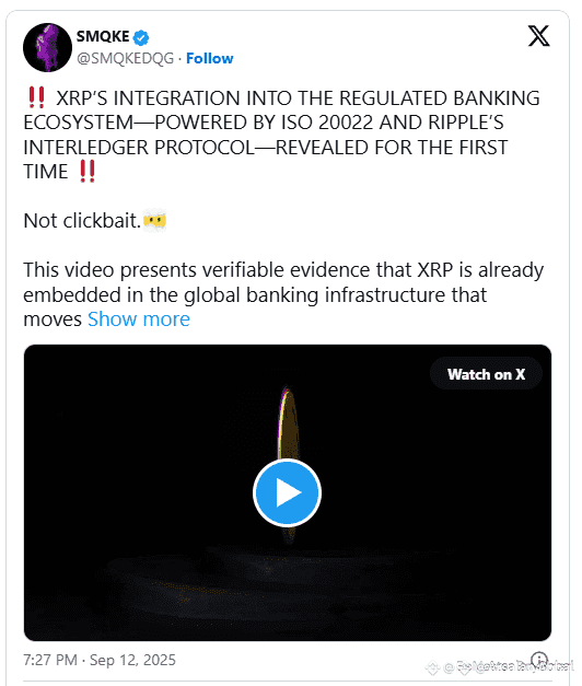 In a tweet, SMQKE emphasized that the evidence presented is not speculative, but fully documented, demonstrating how XRP, through Ripple’s Interledger Protocol (ILP) and ISO 20022 compliance, is embedded in systems that move trillions of dollars daily.