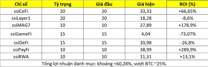 However, it should be noted: strong volatility indicators like GameFi or DePIN can decrease performance if they occupy too large a proportion. Therefore, regular adjustments and closely monitoring the performance of each indicator are necessary to maintain long-term effectiveness. The allocation strategy according to the SSI Index helps optimize profits, while also providing a perspective on risk management and balancing the portfolio across different sectors. => The SSI index is a premium index, you should allocate a small amount of capital to the portfolio; although it profits like individual tokens, with stable fluctuations similar to BNB, it is not a bad choice.