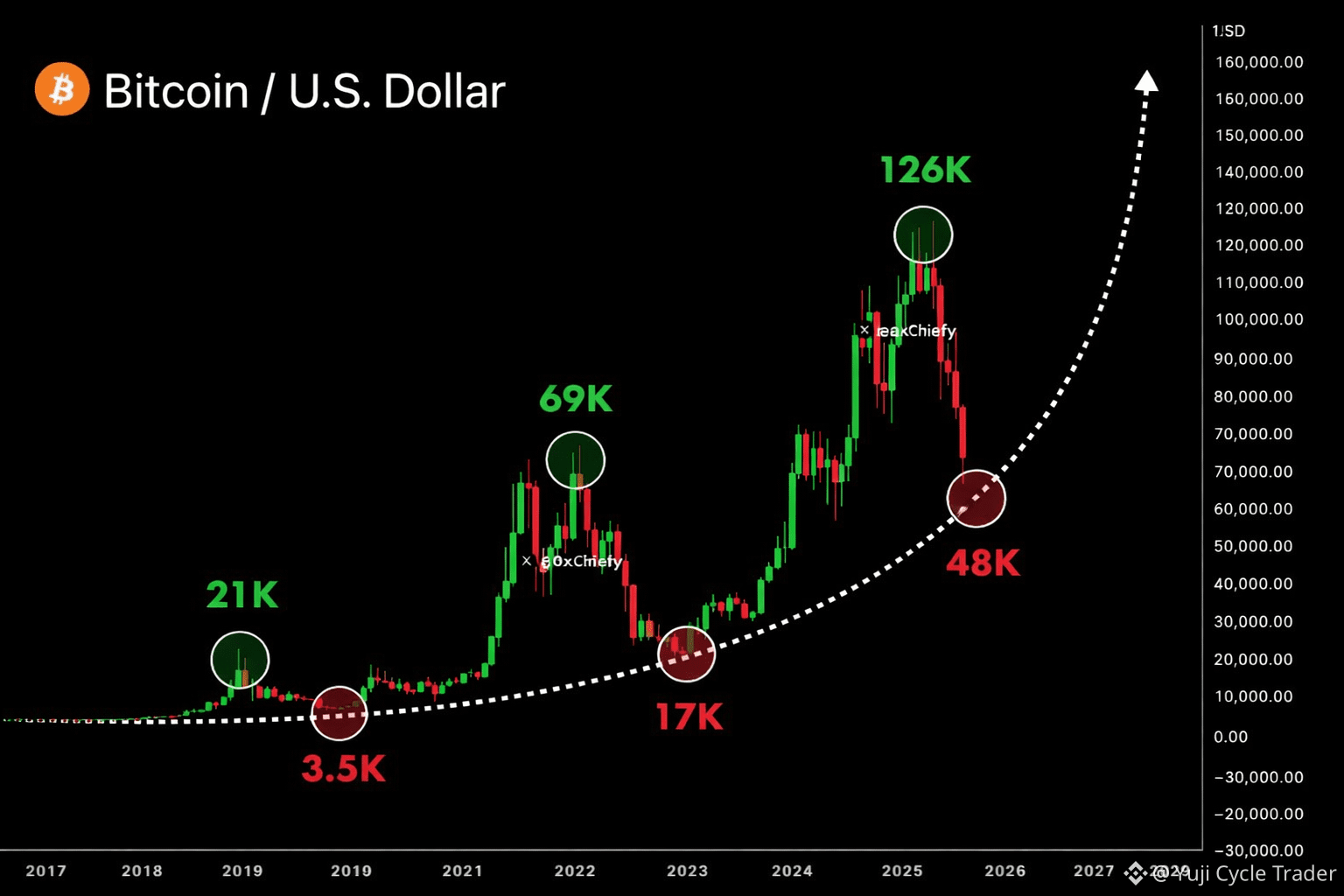 From a structural perspective, the chart is beginning to resemble patterns that have appeared before sharp market declines. These setups don’t appear frequently, but when they do, they often precede a period where volatility expands quickly and the market searches for deeper liquidity.