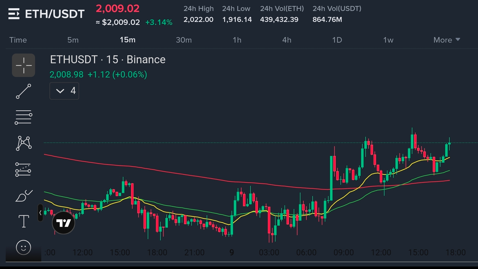 Volume around $21B 🔥 with panic selling earlier. Price bounced slightly to ~$2,009 (+1.7%) 📈 after touching $1,985. Heavy sell walls remain $2,050–$2,100 💱.