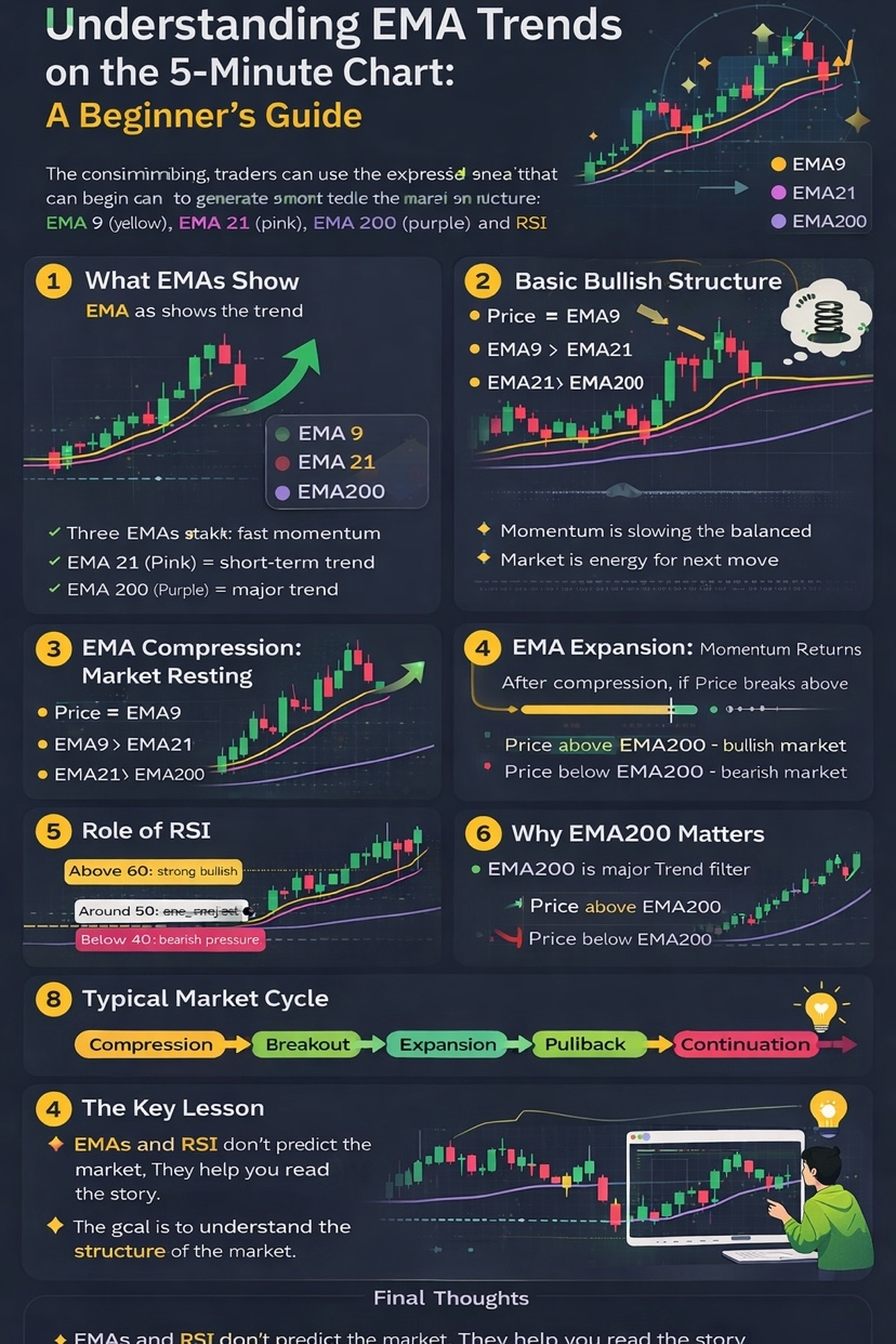 Indicators like EMAs and RSI are not magic tools that predict the future. Instead, they help traders read the story the market is already telling.