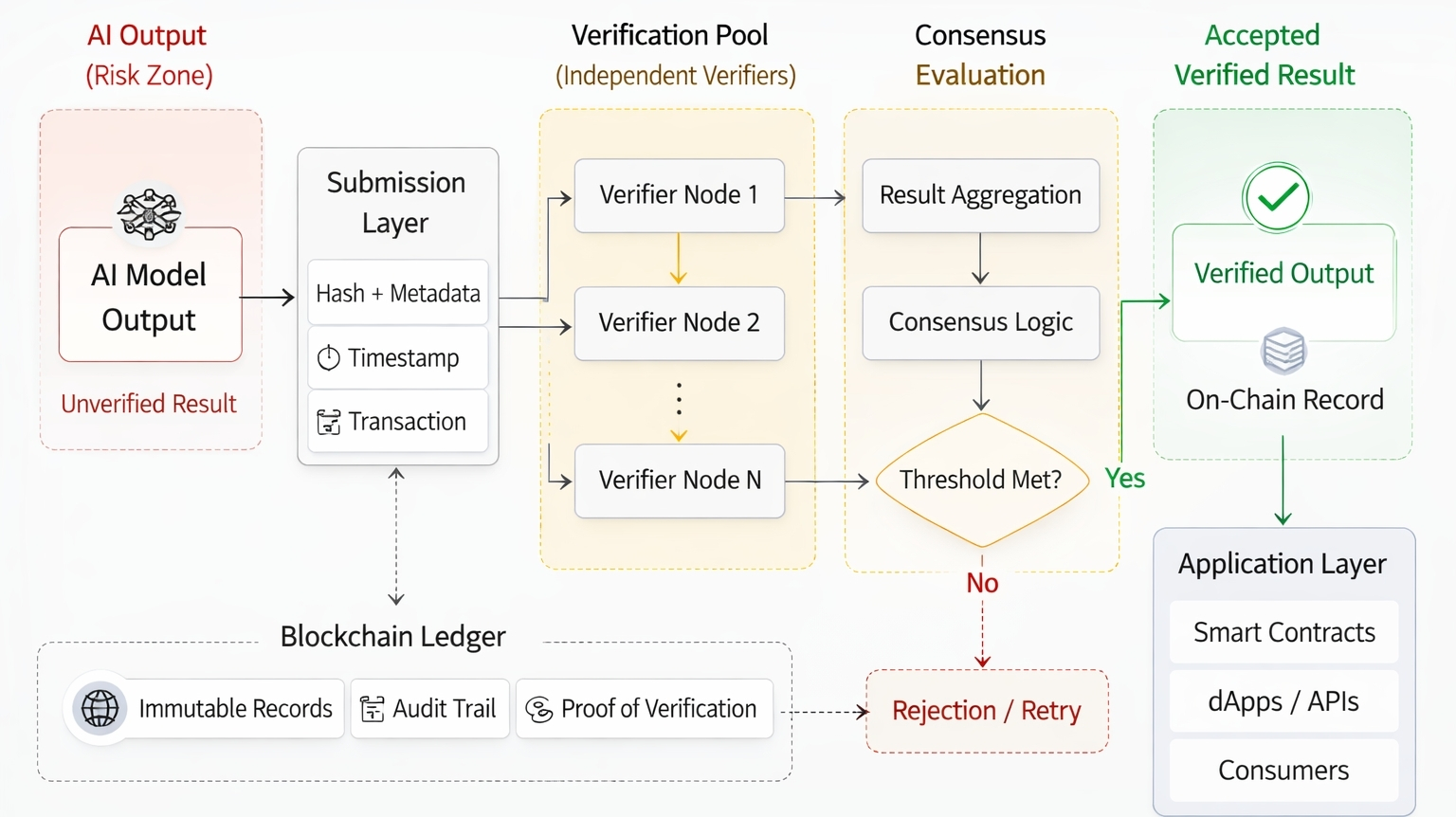 AI Output → Verification Round → Validator Agreement → Accepted Result