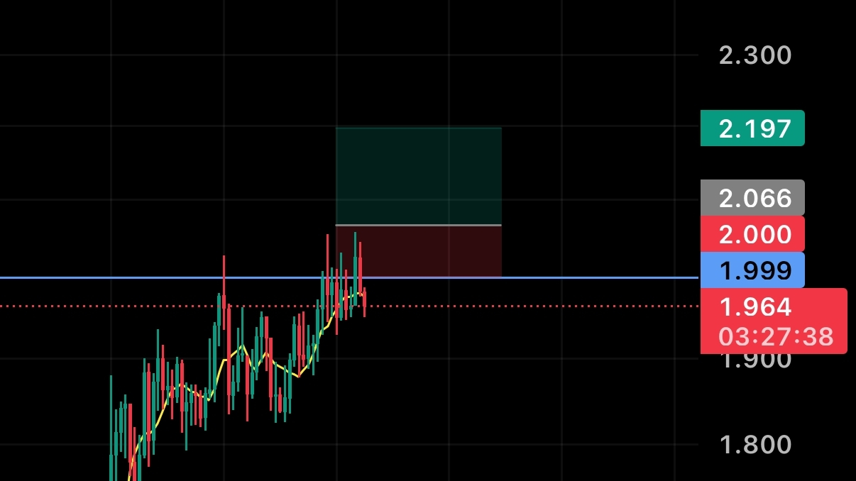 A clean breakout and acceptance above 1.99 could act as the trigger for a long entry, confirming bullish continuation.