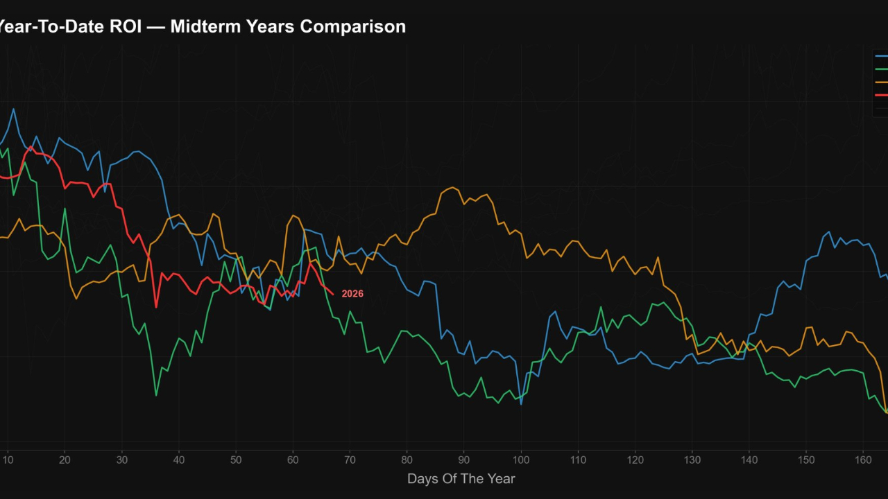 End of the cycle (Days 170+): Most midterm years end the first half of the year with record low ROI (around 0.4 - 0.6), meaning the value is halved compared to the peak at the beginning of the year.