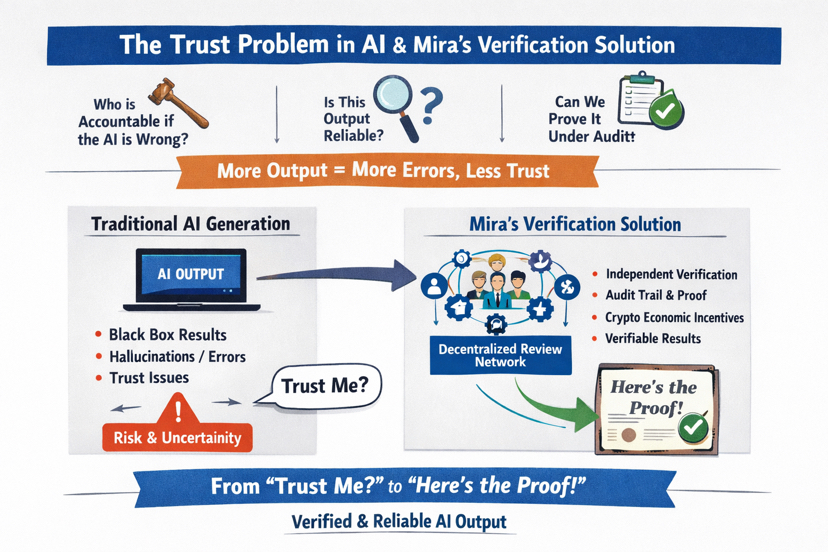 A model generating 10x more output does not automatically solve those questions. In many cases, it makes them worse. More output simply creates more surface area for silent errors.That’s why the whole “generation-first” story just doesn’t sit right with me it feels like something’s missing.It often treats mistakes as a UX problem: add better prompts, add guardrails, add confidence scores. But the real adoption bottleneck is less about syntax and more about governance. In many workflows, AI output is not just “content.” It becomes a decision input. When the cost of being wrong is small, hallucinations are annoying. When the cost of being wrong involves money, access, diagnosis, compliance, or legal exposure, hallucinations turn into trust failures. And trust failures do not scale linearly. Sometimes one serious incident is enough to stop an entire rollout.