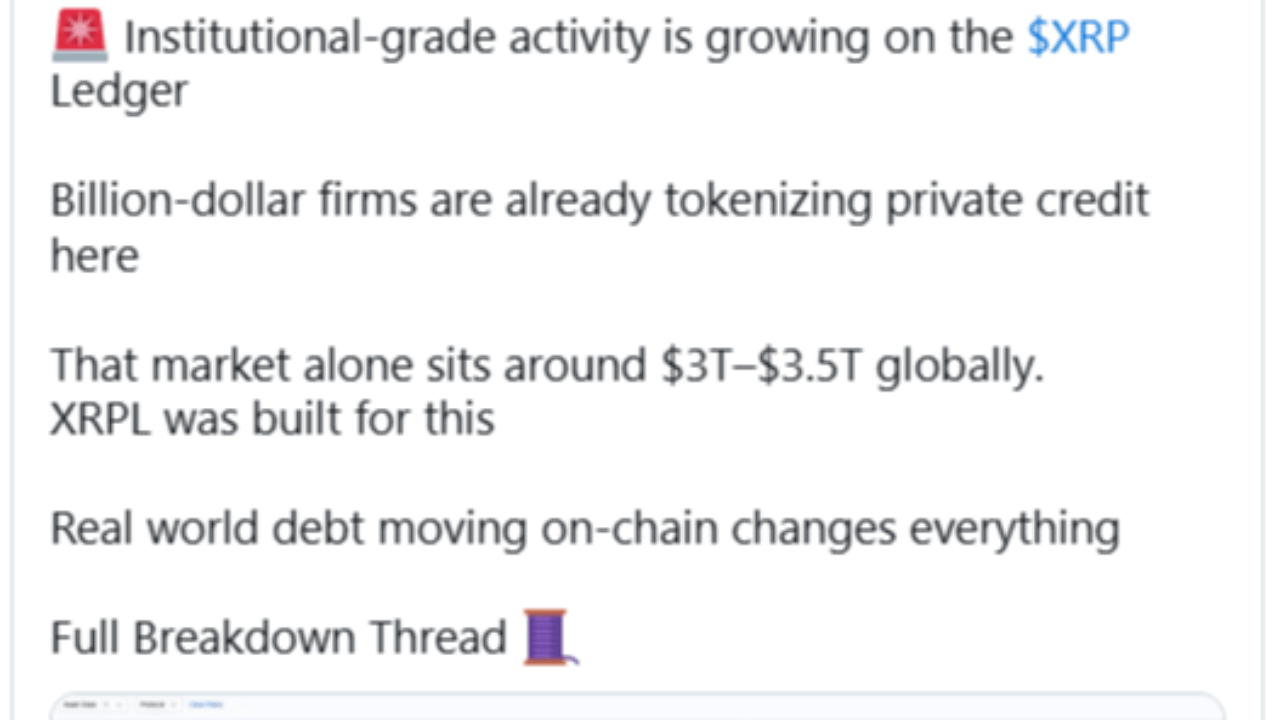 The thread highlights XRPL as a core platform for institutional-grade tokenized assets. With billions of dollars gradually moving on-chain, XRPL demonstrates its ability to bridge traditional finance and blockchain. According to X Finance Bull, the ledger is positioned at the front line of this transition, handling real-world debt efficiently and securely.