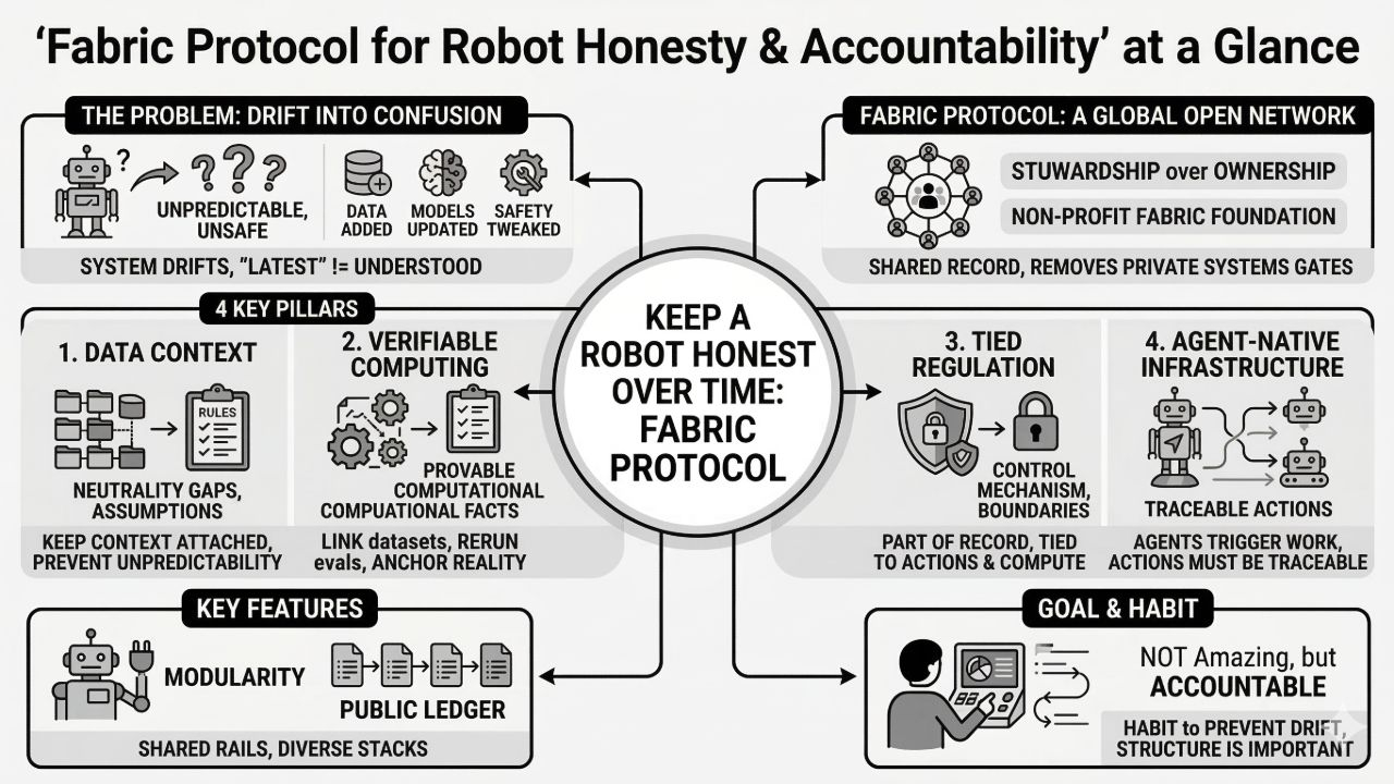 It’s described as a global open network supported by the non-profit Fabric Foundation. The protocol coordinates data, computation, and regulation through a public ledger, using verifiable computing and agent-native infrastructure. That’s a mouthful, but the underlying problem is pretty plain: robot development creates a lot of claims, and without structure, those claims become hard to verify.