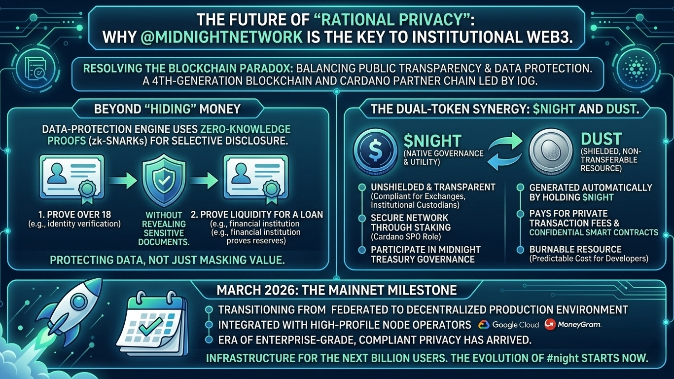 For years, the blockchain industry has struggled with a paradox: how to maintain the transparency of a public ledger while protecting the sensitive data of its users. Traditional privacy coins often find themselves at odds with global regulations, while standard public chains expose far too much corporate and personal intelligence. Enter Midnight Network, a fourth-generation blockchain that introduces the concept of "Rational Privacy."