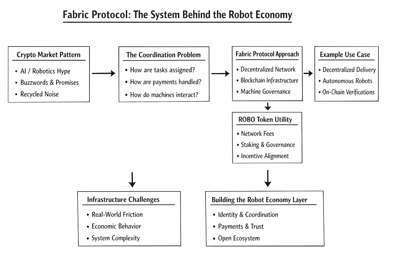 I’ve spent enough time in crypto to recognize the rhythm of the market. Every cycle brings a new narrative — AI tokens, robotics tokens, infrastructure tokens — and most of them follow the same path. A project appears with strong branding, heavy buzzwords, and promises of revolution. For a moment it captures attention, and then it fades into the background noise that fills the industry.