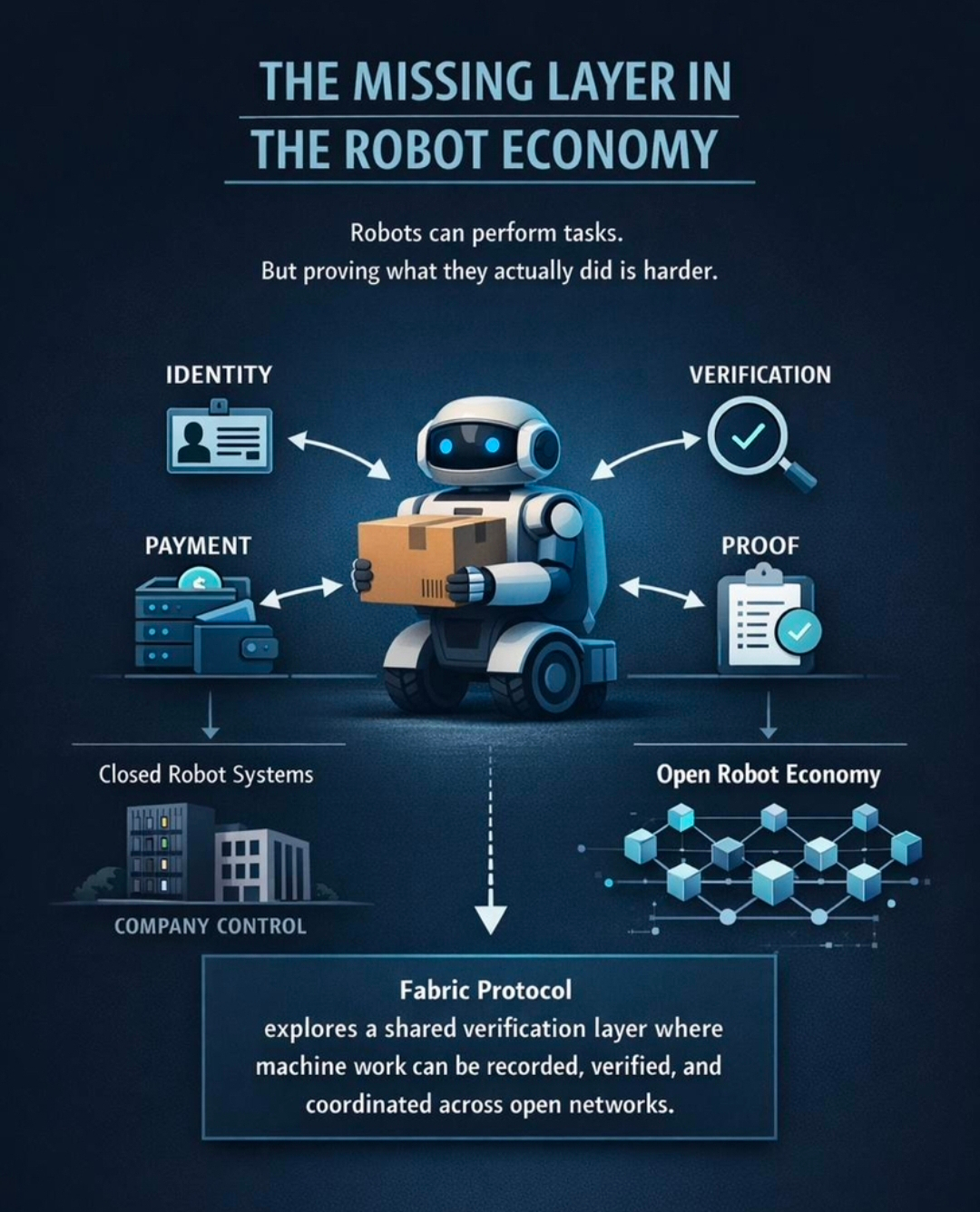 Fabric Idea: Infrastructure for Machine Activity Fabric positions itself as an open network where robots and intelligent machines can participate in an economic system. Instead of being controlled by a single corporation, machines register identities, perform tasks, and interact through a decentralized protocol.
