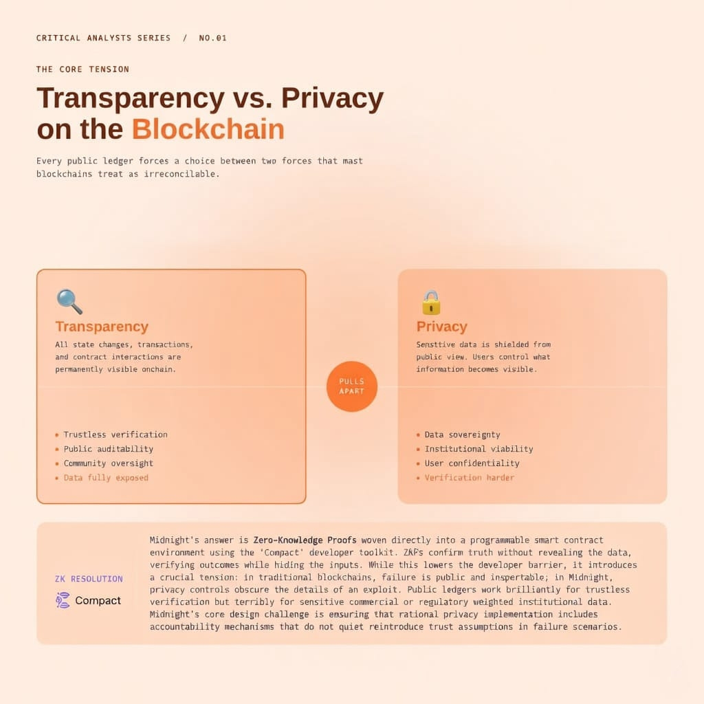 I really want to believe in what Midnight is building. I genuinely do. The problem they’ve identified is spot on, and anyone who has spent time thinking seriously about blockchain infrastructure knows that the "transparency-first" model has hit a wall. Public ledgers are brilliant for trustless verification, but they’re honestly terrible for anything involving sensitive commercial data, personal info, or institutional participation that carries heavy regulatory weight.