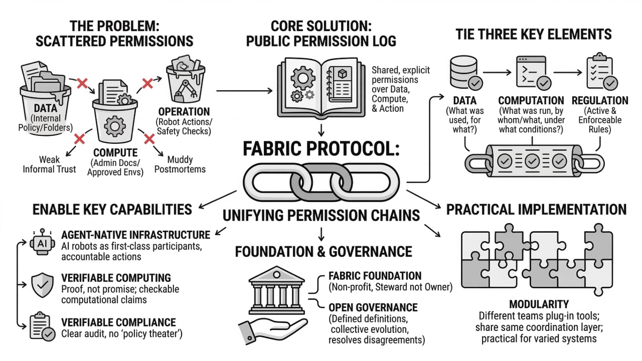 @Fabric Foundation Protocol is described as a global open network supported by the non-profit Fabric Foundation, enabling the construction, governance, and collaborative evolution of general-purpose robots. It coordinates data, computation, and regulation through a public ledger, using verifiable computing and agent-native infrastructure. I read that as an attempt to make permission chains explicit instead of implied.