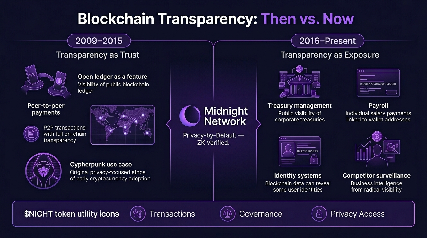 Blockchain has grown beyond peer-to-peer payments. It touches business treasury management, payroll, supply chains, and identity systems. In every one of those contexts, radical transparency creates real problems. A company's competitors can monitor its on-chain activity. An individual's spending history becomes permanently visible to anyone motivated to look.