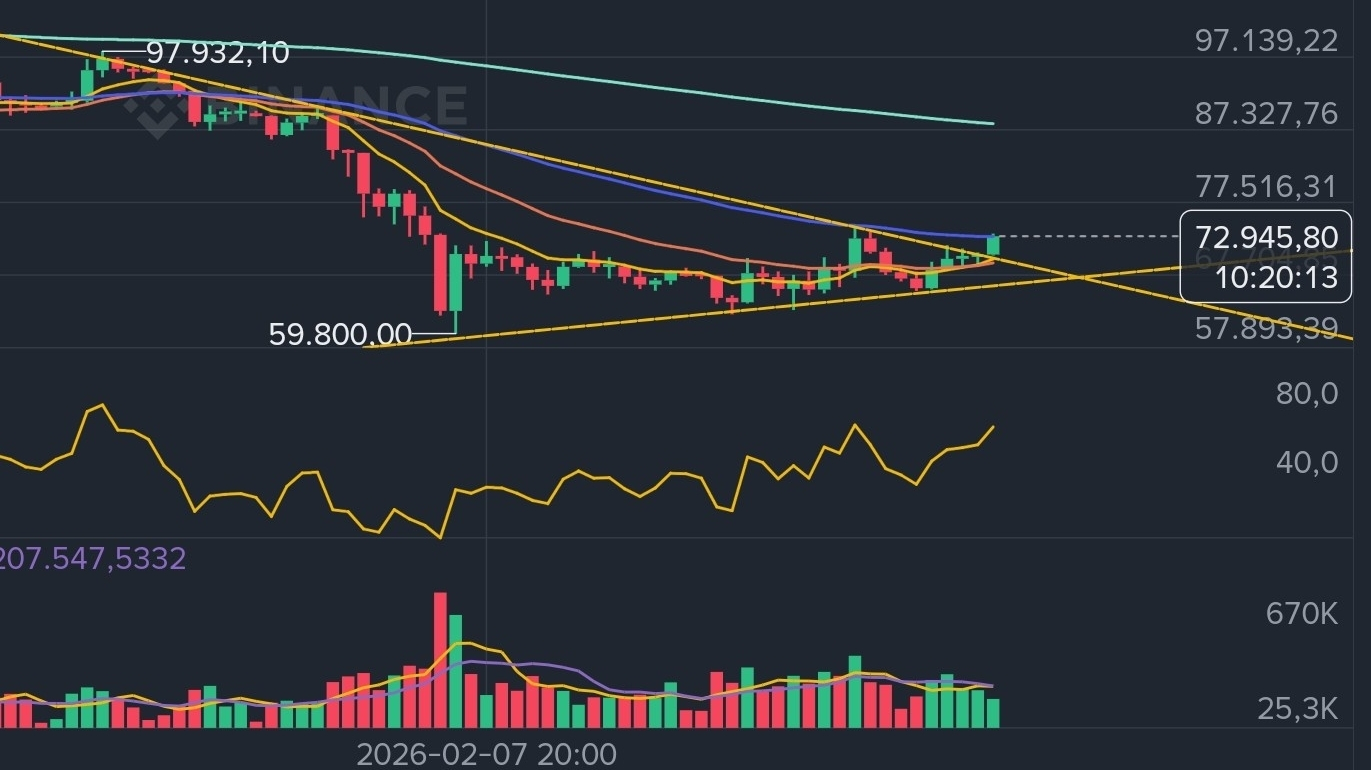 Take Profit (TP): $74,000 (psychological level) and then $77,000.