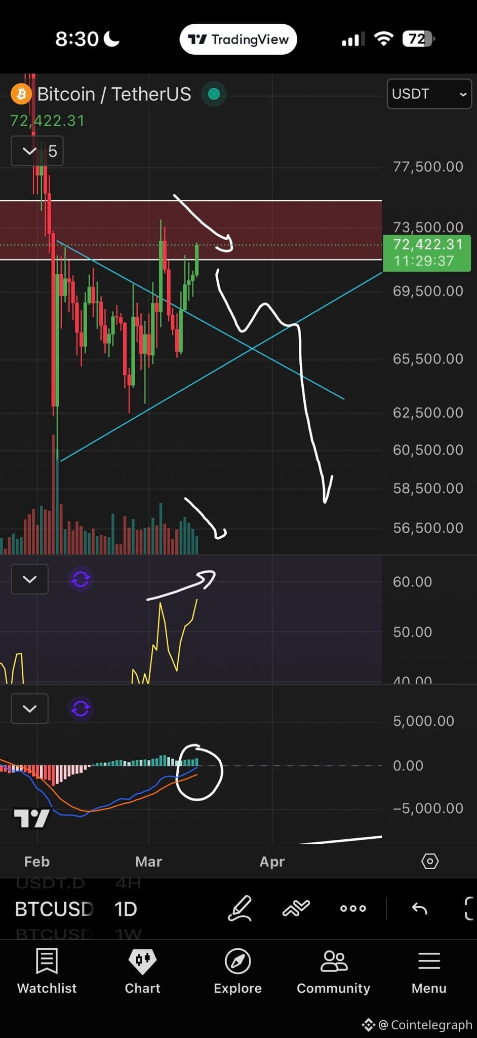 “RSI bear divs, bear price action (volume down + price up), & complete reset of MACD,” he summarized, referring to the relative strength index (RSI) and moving average convergence/divergence (MACD) price indicators on daily time frames.