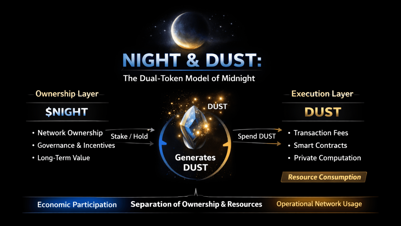 Where NIGHT represents ownership, DUST acts as the operational resource that powers activity on the network.