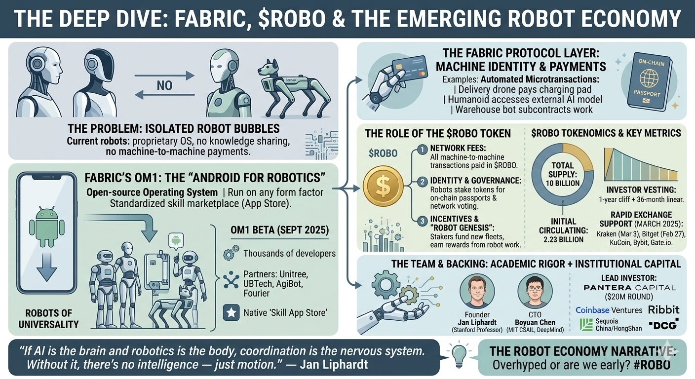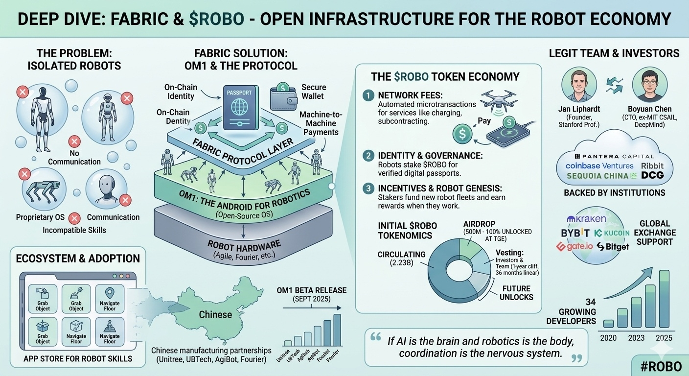 But here's where the crypto part actually makes sense. The OM1 system handles the robot's brain. But robots also need an identity, a wallet, a way to transact. That's the FABRIC protocol layer.