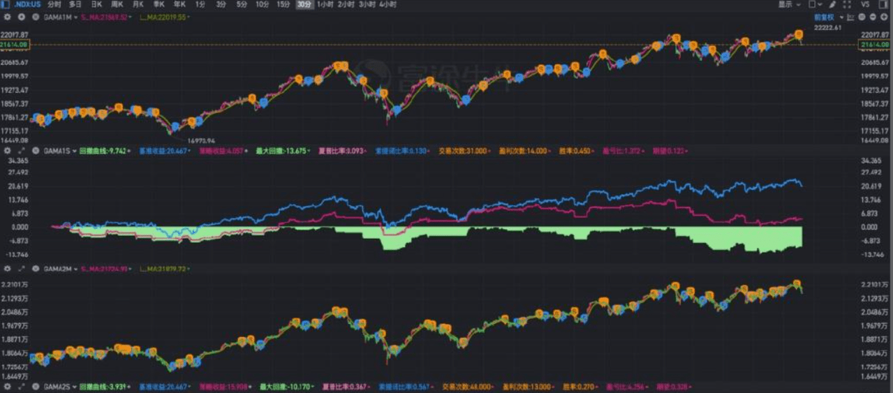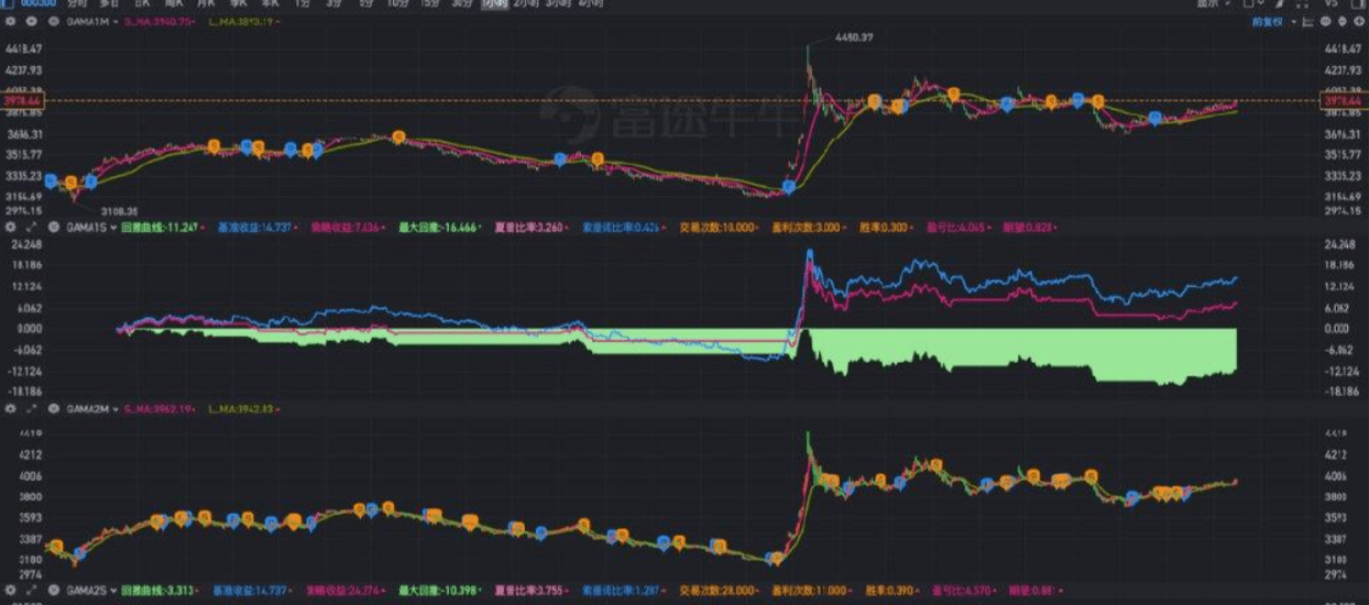 Modify the starting point, backtest for a year, then modify the moving average algorithm, load them all into the chart, and directly compare the two strategies.