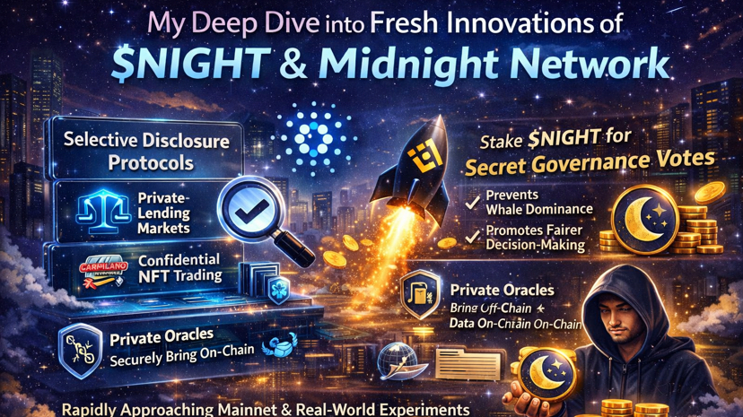 After diving deeper into $NIGHT and @MidnightNetwork, what truly stands out to me is the breakthrough innovation of selective disclosure protocols. The project enables fully anonymous smart contracts on Cardano where sensitive data remains completely hidden, yet users can selectively reveal only the exact pieces of information needed — powered by advanced zero-knowledge proofs. This unlocks entirely new possibilities such as private lending markets and confidential NFT trading without ever exposing identities.