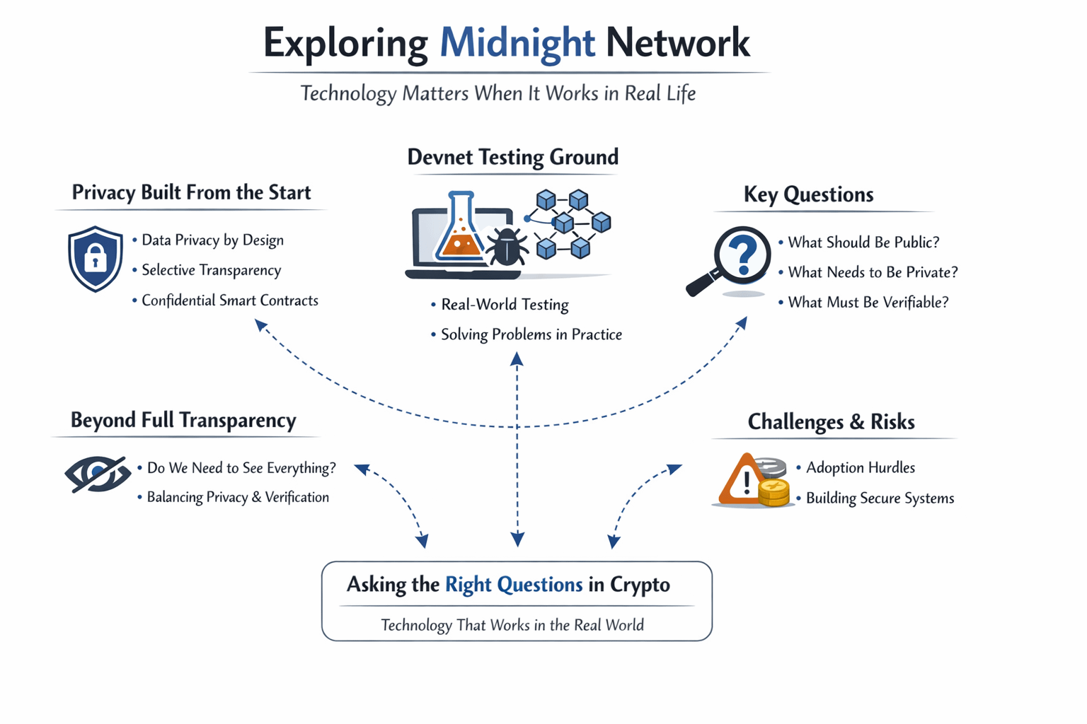 What I like about Midnight Network is that it is not another way to keep things private or a tool to hide what you are doing. It asks a basic question: do we really need to know everything that is happening on the blockchain? Most blockchain systems I have worked with think that it is always good to be open and transparent. They think that every account, transaction and smart contract should be public forever. Midnight Network asks if this is really what people need. It says that maybe we do not need to know everything and that we can build privacy into the system from the start.