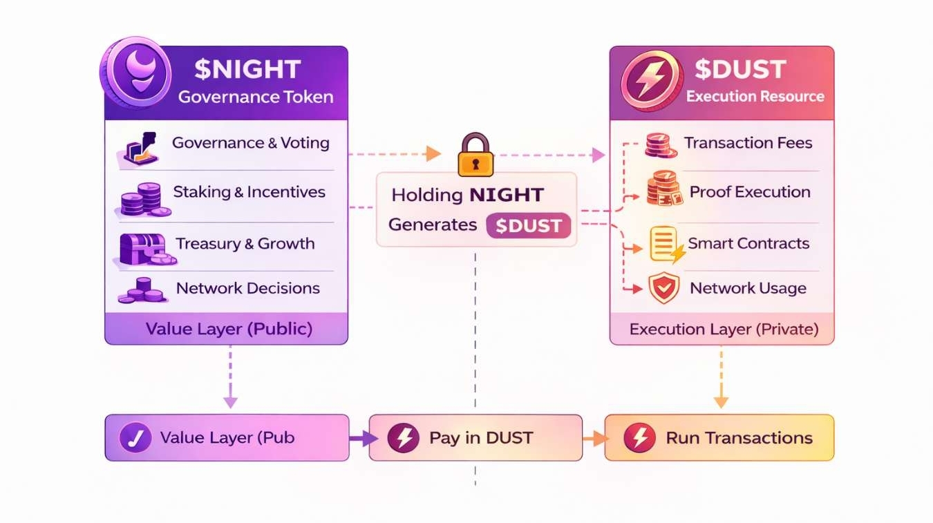 Instead, holding NIGHT generates DUST — a resource used to run transactions.