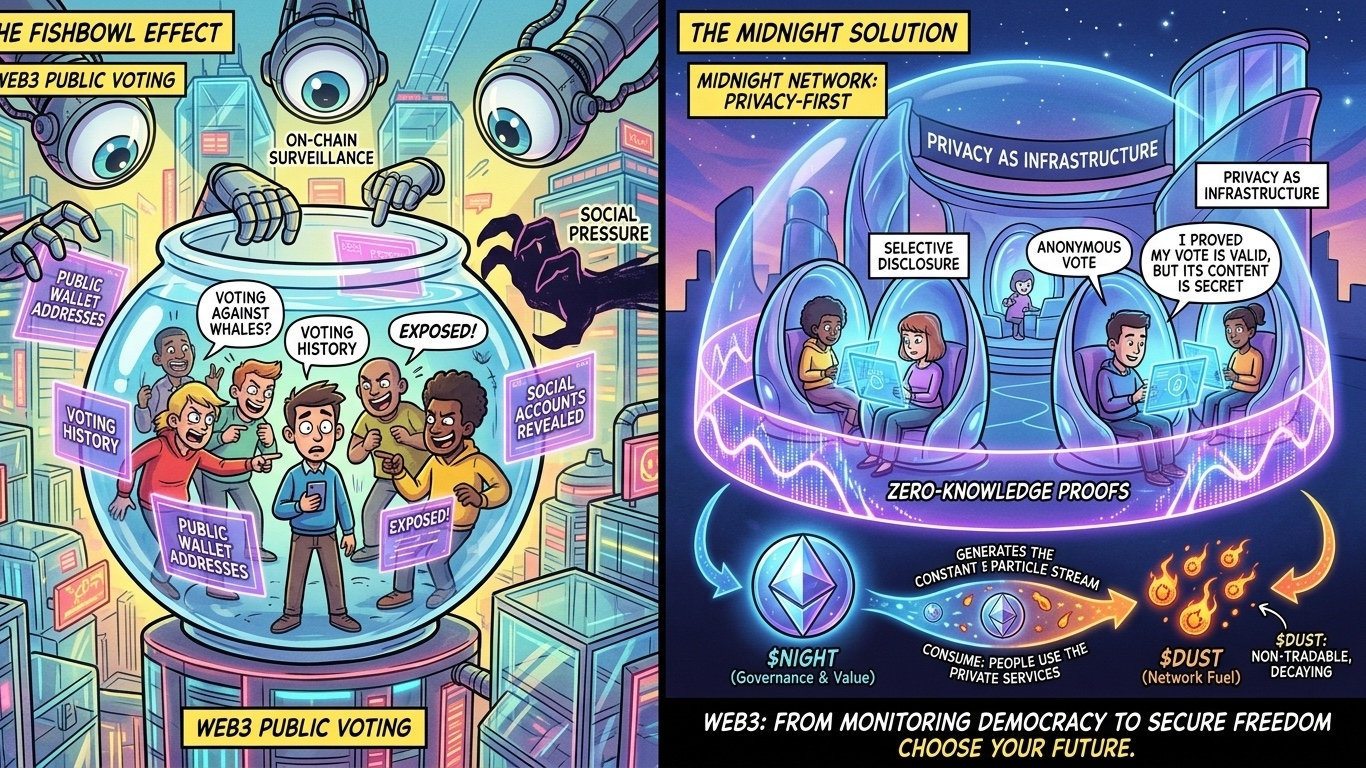 And @MidnightNetwork goes against the current, instead of piling up more complex multi-signature or quadratic voting systems, it directly engraves 'selective disclosure' into the protocol's core. Using zero-knowledge proofs: I can prove to the whole world that 'I participated in the voting, and my vote is legitimate and valid,' but whether I voted for approval or disapproval, only I know.