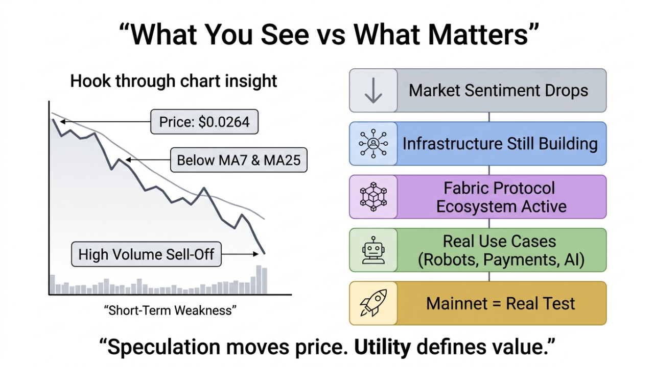 Fabric Protocol is not a meme. It is not a token with nothing behind it. The infrastructure being built — on-chain robot identity, Proof of Robotic Work, the OM1 operating system running across real hardware from UBTech, AgiBot, Fourier — that does not disappear because the price had a bad week. The BrainPack hardware is shipping. The Circle/USDC integration for autonomous robot payments is real and demonstrated. The Virtuals Protocol partnership bridging AI agents to physical machines is live. None of that changed today.