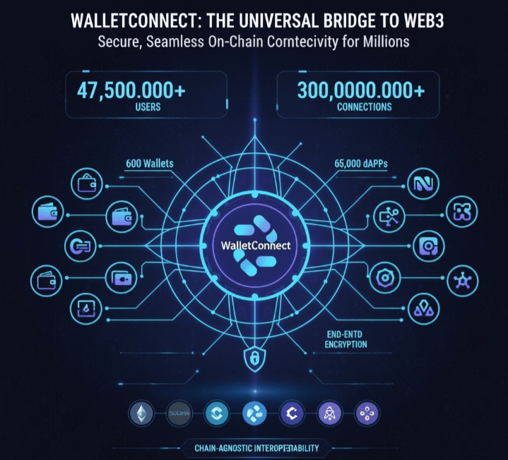 The rapid developments in Web3 rely on a fundamental requirement: secure, seamless, and global connectivity between cryptocurrency wallets and decentralized applications (dApps). This critical role is overwhelmingly fulfilled by @@WalletConnect an open-source protocol launched in 2018 that has become an indispensable part of the blockchain infrastructure. What began as a simple solution for mobile wallet interaction has blossomed into an extensive network supporting over 600 wallets and more than 65,000 dApps, facilitating over 300 million connections for over 47.5 million users. The success of WalletConnect lies in its elegant solution: providing end-to-end encrypted connections that allow users to interact with dApps without revealing their private keys, thus maintaining complete control over their digital assets. Its chain-agnostic design ensures compatibility across almost every major blockchain, from Ethereum Virtual Machine (EVM)-compatible chains to Solana, Cosmos, and Polkadot, cementing its position as the de facto standard for on-chain user experience (UX). This global accessibility and strong security make @undefined not just a tool but the vital connective tissue of the decentralized internet