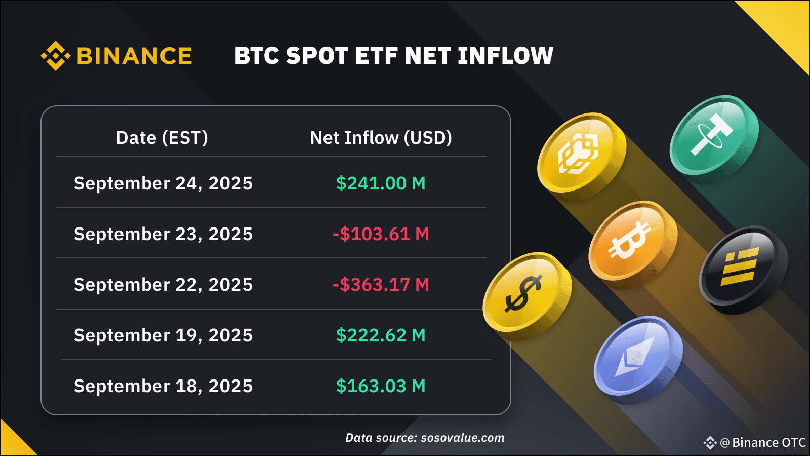 As illustrated in the table, BTC spot ETFs experienced a net capital inflow of $159.87 million over the past five trading days, despite negative outflows on Monday and Tuesday. Our desk has observed some capital rotation from crypto investments into the US stock market, particularly within the semiconductor sector. The Federal Reserve’s rate cut last week was fully anticipated and priced in ahead of the announcement, which largely explains the market retracement observed after Wednesday. We view this pullback as temporary, with the broader global market poised to benefit from a less restrictive liquidity environment.