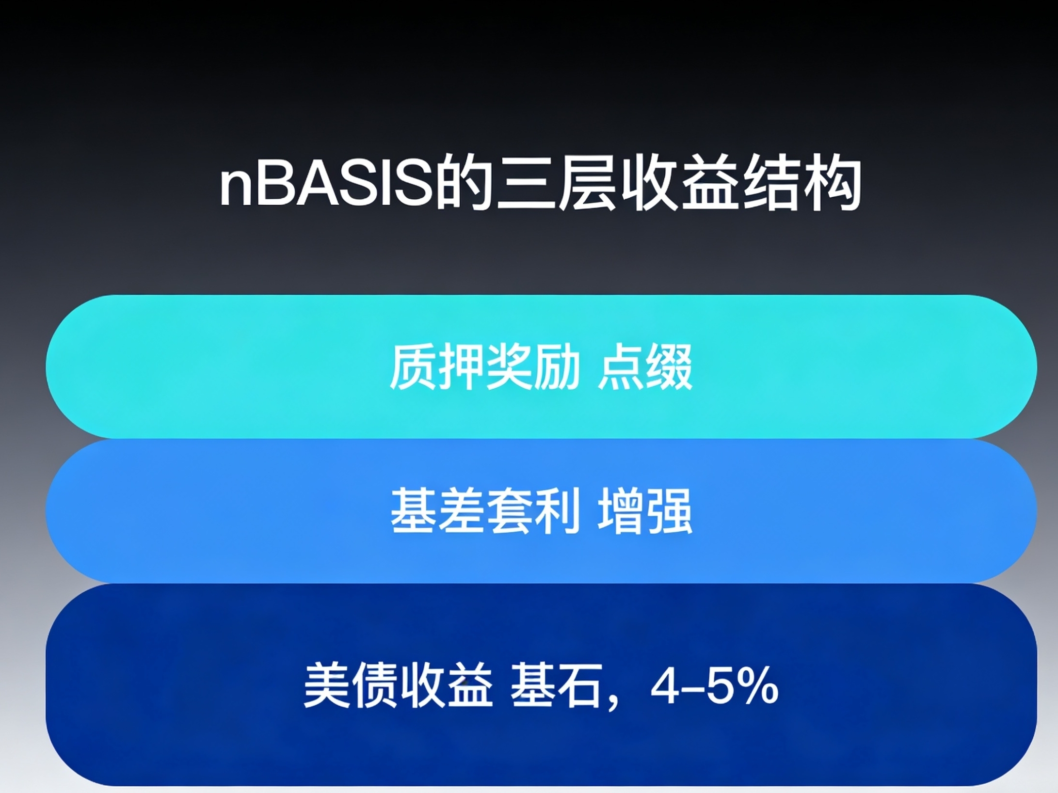 Digging into the underlying structure of nBASIS, what connects is Superstate's USCC fund. Three layered strategies are stacked together: U.S. Treasury yields as the foundation, basis arbitrage as an enhancement, and staking rewards as embellishments. Like a carefully crafted investment portfolio, each layer has its role. But what I care about more is not the yield numbers, but the diversity of yield sources. After experiencing the market fluctuations of the past two years, I am increasingly convinced that a single source of yield is a single risk exposure. In the crypto market, those who survive long understand the importance of spreading their eggs across different baskets. While you focus on APY, others are reconstructing the underlying assets.
