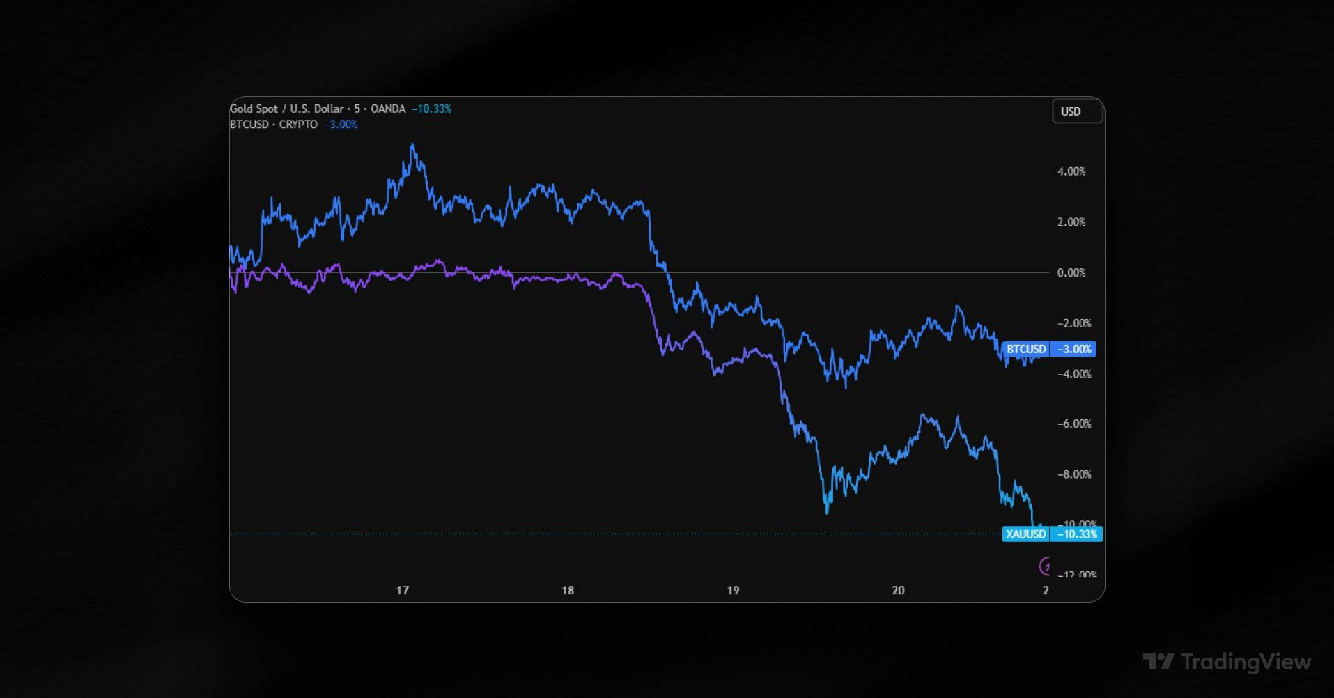 Hal tersebut membuat Bitcoin ($BTC ) sempat mengalami penurunan hingga di bawah US$70 ribu atau minus 3%. Akan tetapi, tidak separah yang terjadi dengan emas yang anjlok hingga 10,3%, menurut Trading View.