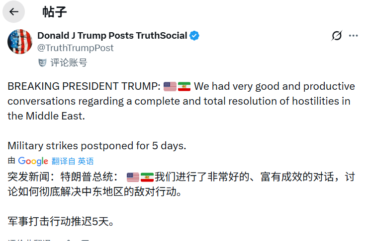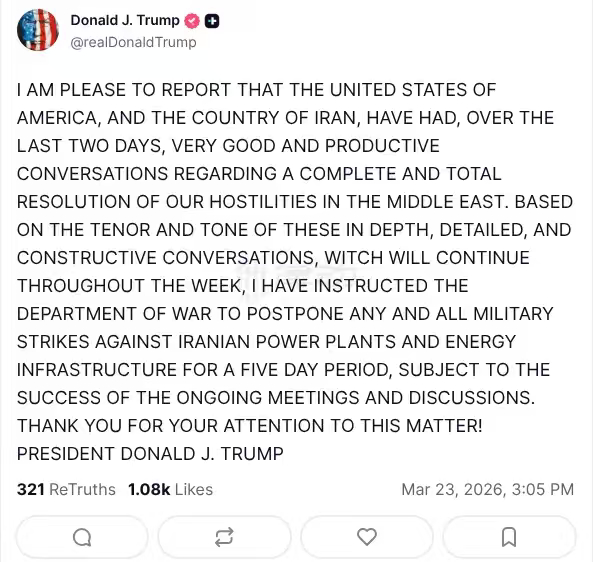 Trump announced a five-day suspension of all military strikes against Iran's power plants and energy infrastructure.