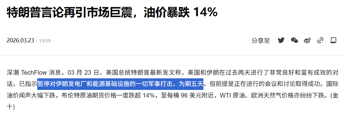 This also indicates a problem: all assets are completely 'kidnapped' by news of the Middle East conflict now. Prices rise because of a single statement from Trump, and they fall for the same reason; there is fundamentally no independent logic. Retail investors are just gambling on luck, and a moment's inattention could leave them hanging on the mountaintop.