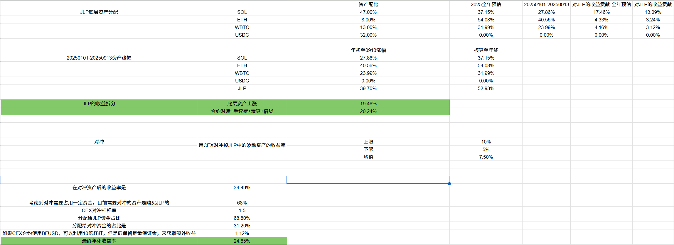 ⚡ JLP's yield = underlying asset price fluctuations + various fees (loan interest + transaction fees + leverage liquidation, etc.)