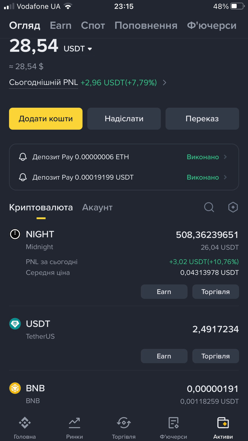 ✅ Coin of the day: NIGHT brought a cool +11.58% growth. My balance is confidently holding around the mark of 29 USDT.