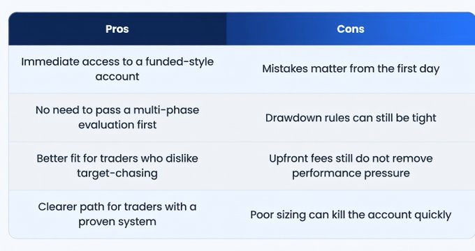 Pros and Cons of Instant Funded Accounts