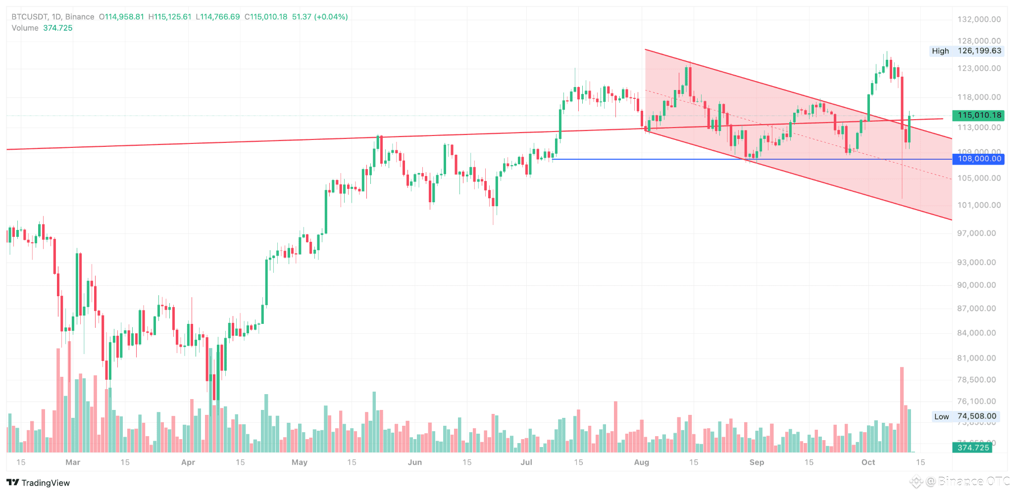 By Monday, Bitcoin ($BTC) had rebounded from its lows and was trading around $115,000. Ethereum ($ETH) and Solana ($SOL) also recovered, trading at approximately $4,170 and $198, respectively. Binance Coin ($BNB) emerged as one of the strongest performers, quickly recovering from the sharp decline and trading near its all-time high of $1,349.99, which was recorded on October 7.