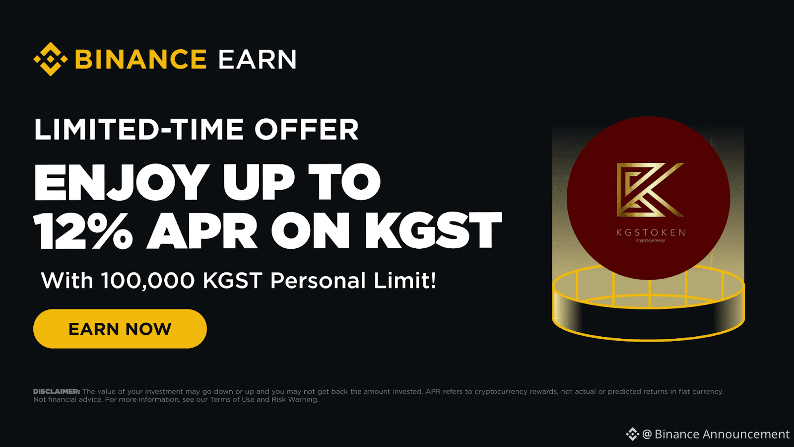 Binance Earn is excited to launch a new campaign for the KGST Boost Program, featuring KGST Simple Earn Flexible Products!