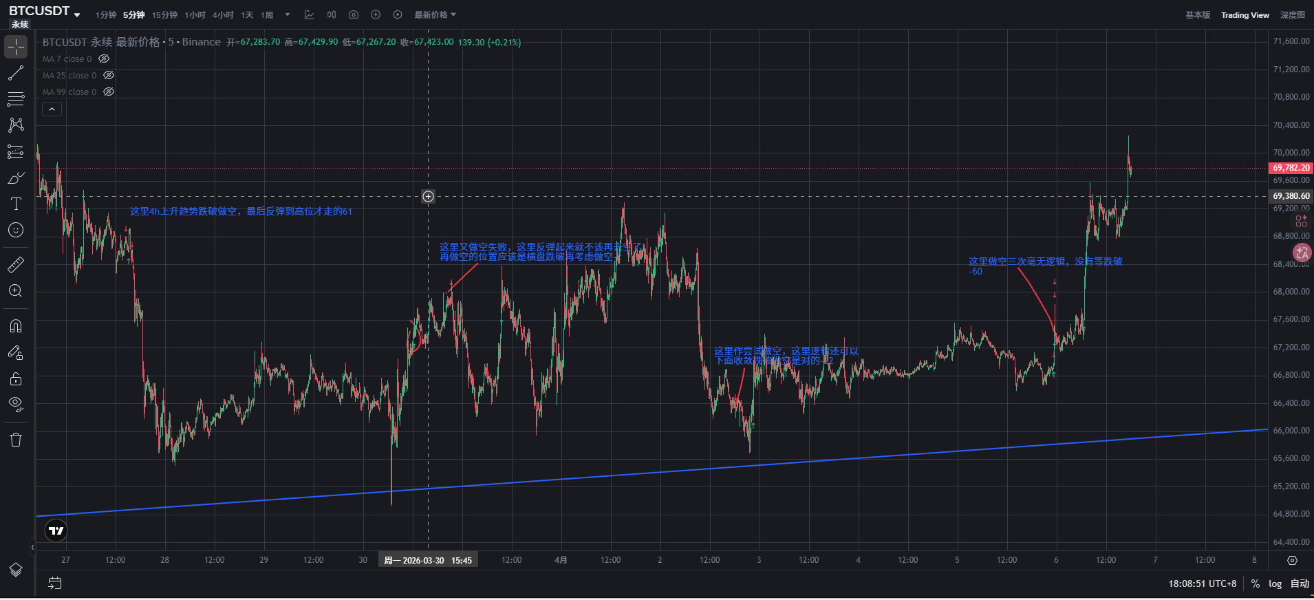 1. A total of 4 positions were selected to short BTC, only 2 positions were relatively reasonable, with the expectation of continuing the large-scale trend of the previous significant drop, and it finally moved down to -23