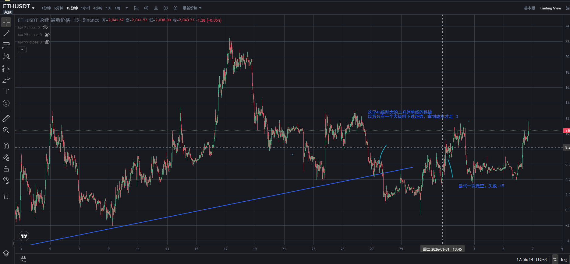 2. Shorting ETH follows the same logic as BTC, but it also didn't break out -18