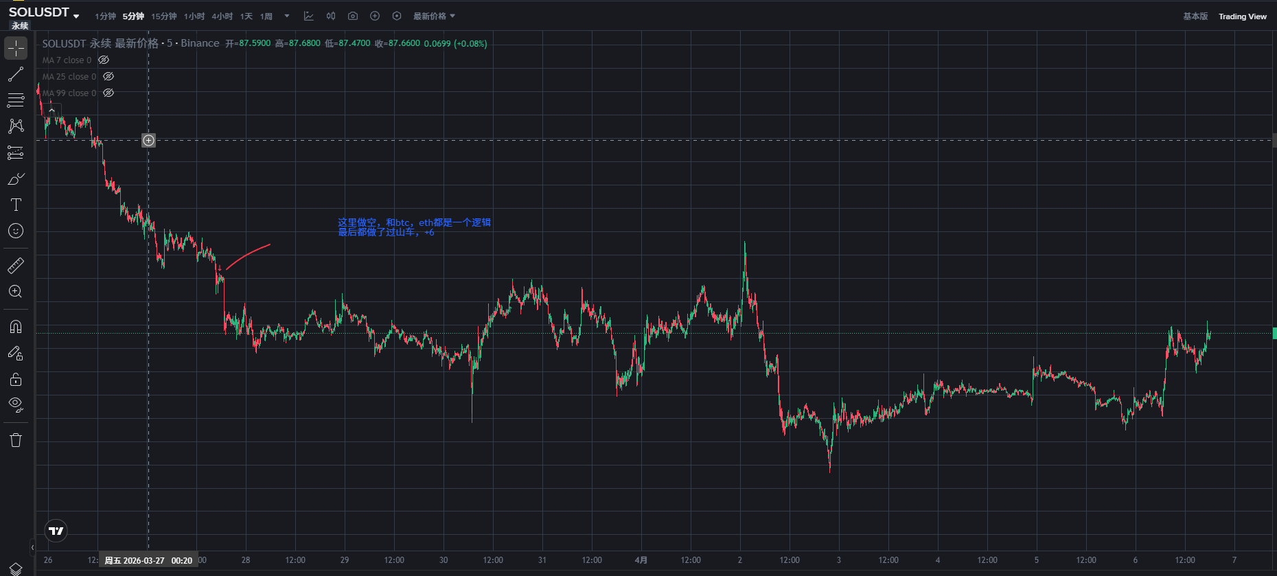 3. Shorting Sol, which also follows the same logic as BTC, it also had a rollercoaster ride +6