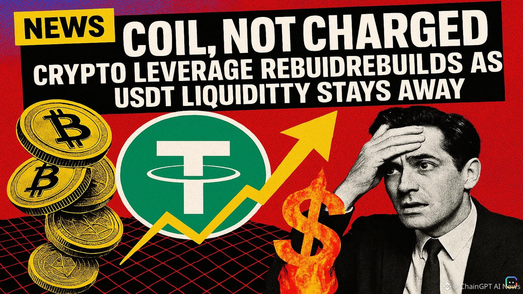 The crypto market is trying to steady itself, but under the surface four different data signals are pulling in opposite directions — a mix that makes the current setup more nuanced than it looks at first glance. What the CryptoQuant report finds CryptoQuant highlights a market that’s hedged rather than confused. The four key signals: - Exchange netflows: After a period of outflows, exchanges have seen net inflows for two straight days, moving from -1,275 BTC to +682 BTC and then +428 BTC — implying short-term sell-side supply is returning. - Derivatives open interest: OI rose from $21.22 billion to $22.60 billion over three sessions, showing traders are rebuilding leveraged positions. - Funding rates: Funding flipped from positive to negative and stayed negative for two days, indicating the derivatives market is balanced and cautious — traders are opening positions without one-sided conviction. - USDT 60-day market cap change: Still below zero, meaning the stablecoin liquidity that typically fuels sustained spot-driven rallies has not meaningfully returned. Why that mix matters Two of these signals (netflows and rising OI) would normally read bullish. But the negative funding rate and absent USDT inflows complicate that picture. The market isn’t simply bullish or bearish — it’s hedged. A hedged market tends to stay range-bound until one side of those hedges is forced to cover; the current data doesn’t say which side that will be. Practical implication: leverage is rebuilding without fresh stablecoin-fueled spot demand. Historically, that produces shallower, more volatile price recoveries rather than durable, directional trends. A probability-based breakdown CryptoQuant frames the cross-currents in a probability distribution (not a prediction, but a structured view of what the signals support): - 40%: range-bound / neutral - 35%: short-term upside attempt - 25%: downside pressure What will confirm each thesis - Upside confirmation: exchange inflows need to slow or reverse and funding rates should recover toward neutral (signaling renewed conviction among longs). - Downside acceleration: inflows keep expanding while open interest rises and volatility climbs. Market-cap technical context The total crypto market cap is showing tentative stabilization near $2.3 trillion, located between the 100-week and 200-week moving averages — a transitional zone rather than a clear trend environment. Key historical moves: - A rejection from the $3.8–$4.0 trillion zone created a decisive lower high and broke the prior bullish sequence. - The market retraced sharply, losing the 50-week MA and briefly testing the 200-week MA before bouncing — the 200-week is acting as structural support for now. - But the recovery lacks conviction: the market hasn’t reclaimed the 100-week MA, the 50-week MA is starting to slope down, and volume shows big spikes on sell-offs but muted participation on rebounds. What to watch next - Reclaiming $2.6–$2.8 trillion would suggest renewed strength and a path back toward prior highs. - Failure to hold the 200-week support opens the door to downside toward roughly $2.0 trillion. Bottom line The market is coiled — not charged. Derivatives desks are rebuilding exposure, but spot liquidity (via USDT) hasn’t returned in force. That makes a clear, sustainable breakout less likely in the near term and keeps the market vulnerable to volatile, short-lived moves until one of the key signals gives way. Source: CryptoQuant. Chart: TradingView.com. Featured image: ChatGPT. Read more AI-generated news on: undefined/news