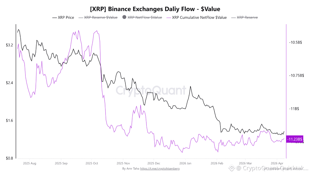 The data shows Binance’s cumulative XRP netflow value has fallen from around -$10.4 billion in mid-August 2025 to -$11.23 billion now, signaling a continued drain in XRP supply on the exchange.